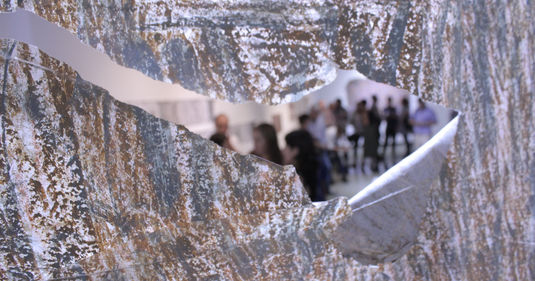 Con la certeza de que vivimos en un mundo poblado por fantasmas, este conjunto de obras va en busca de las marcas de sus posibles historias, de las pisadas, de los restos que flotan en el aire. Todas ellas son el resultado de un gesto anterior que acciona; devienen de algo y provocan algo. Nos recuerdan que somos individuos precarios y temporales pero también iluminan señales “de alguna cosa”[1], de un mundo que se abre, de un sentido que circula.